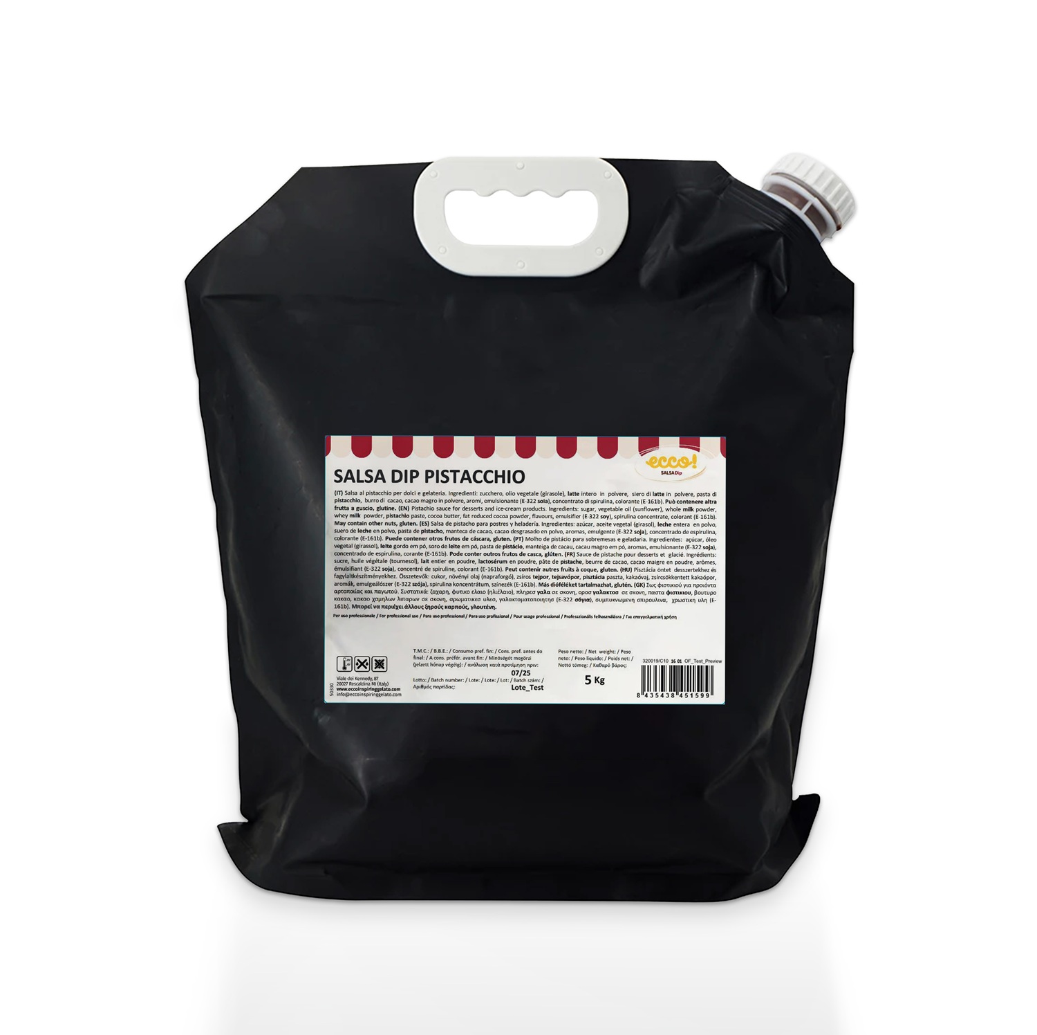 Liquid Pistachio Chocolate. This sauce can be served hot or cold, even with dispenser/pump. High quality sauce with a great pistachio chocolate flavour . Many applications possible on sweet products and desserts. This chocolate does not solidify and therefore retains its full flavour. Practical advantage in use is that the chocolate does not need to be heated to refill bain-marie or serving unit.