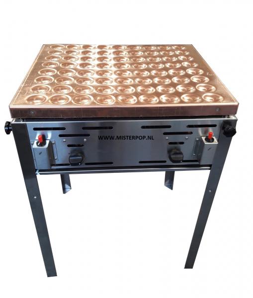 Dimensions: 70(L) x 525(W) x 950(H) mm Propane: 11KW, piezzo ignition, including pressure regulator and gas hose Weight: 33 kilograms Weight of copper plate: 13 kilograms Weight of undercarriage: 20 kilograms Packing unit: each, including stainless steel gas undercarriage